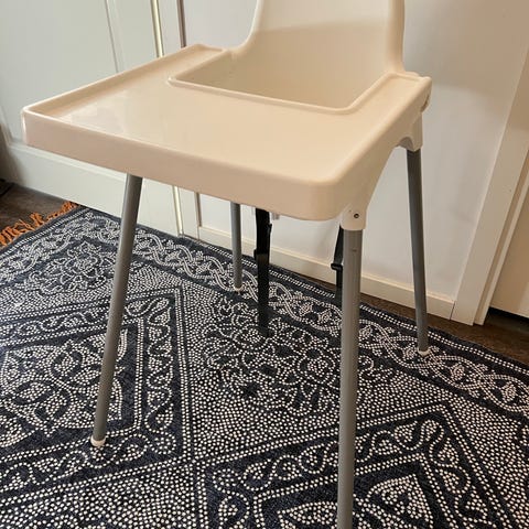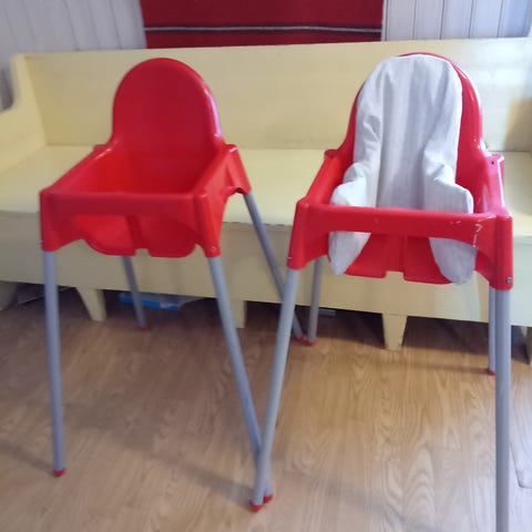 Ikean syöttötuoli, mukaan tulee tarjotin lisäosa, turvavyö ja pehmuste (väri keltainen). Vain nouto.