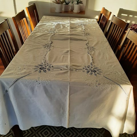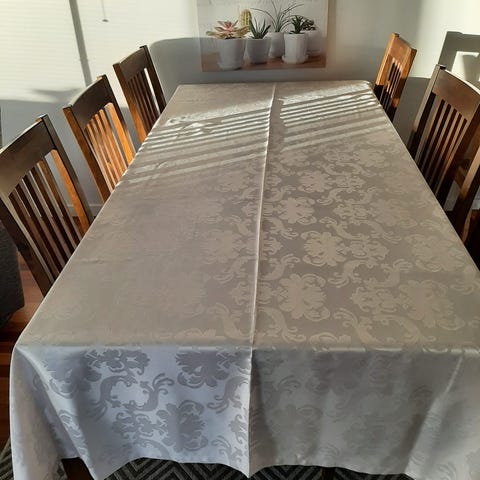 suorakulmainen pöytäliina ruokapöydälle. Sopii useimpiin suorakulmaisiin pöytiin arki- ja juhlakäyttöön. Väri on luonnonvalkoinen.