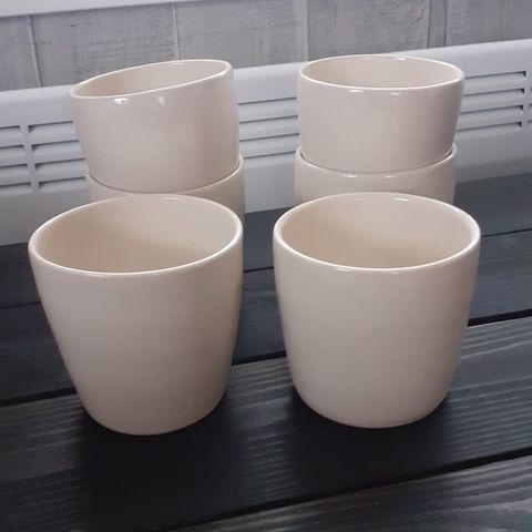IKEA valkoinen muki keramiikkaa. Perusmallinen, pinottava muki kuumille juomille, kuten kahville, teelle tai kaakaolle. Materiaalina keraaminen posliini, sileä valkoinen lasitus. Sopii arkiastiana keittiöön tai toimistoon. Kuvissa näkyy useampi samanlainen muki samasta sarjasta.