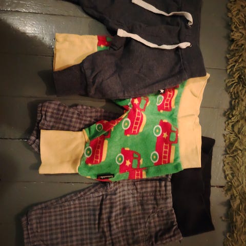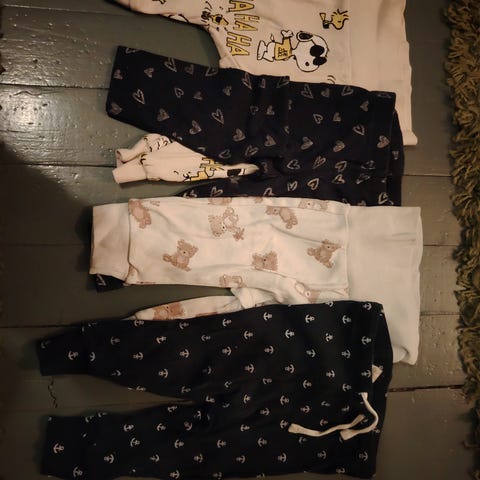 2 kpl trikoo housuja ja 1 kpl vihreät college housut 56 cm. Käytetty kunto.
