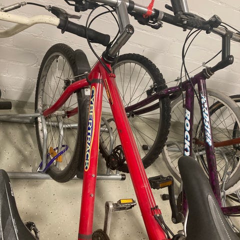 Yli 20v käytössä ollut aikuisten polkupyörä. Kunto huono. Takana vanne halki, pyörällä ei pysty polkemaan. Pyörässä kiinni nastarenkaat kesärenkaat mukana, kts kuva.