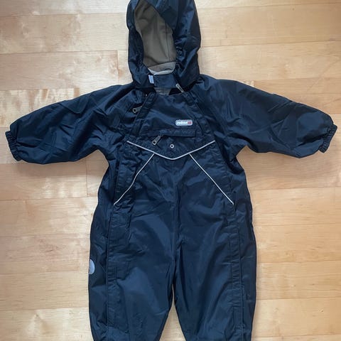 Uutena ostettu ja muutaman välikauden ollut käytössä kahdella lapsella. Hyvin tuulenpitävä ja vähäisen sateen kestävä täysin ehjä välikausihaalari. Aran värin vuoksi tummentumaa on tullut jalkoihin, näistä kuvia. On toiminut tosi hyvin villahaalarin kanssa viileämmilläkin keleillä. Viimeinen kuva näyttää oikean värin, muissa väri on haalistunut.