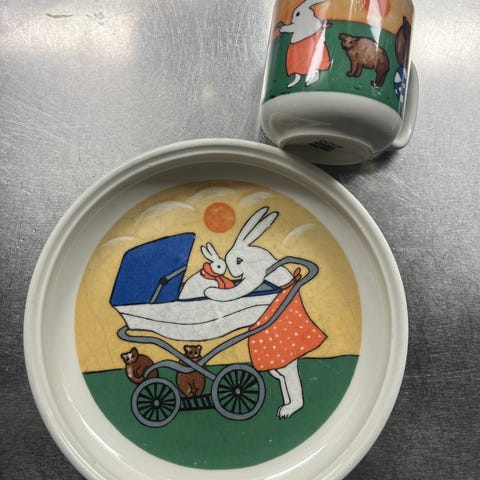 Arabia Vikkelät leppäkertut lastenastiasto (muki ja lautanen)
