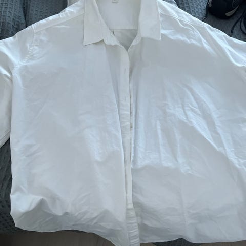 Lindex paitapusero, kokolapussa XL, mutta menee myös kokoon XXL, koska on väljää mallia. Väri valkoinen, ja materiaali 100% puuvillaa. Pitkähihainen malli, jossa kaulus, nappikiinnitys edessä ja rintatasku. Helma on pyöristetty. Sopii arki- ja toimistokäyttöön sekä kerrospukeutumiseen.