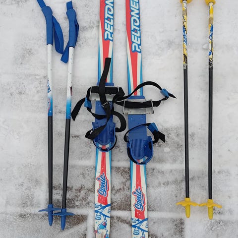 Annetaan käytetyt sukset ja sauvat settinä. Sukset jo kuluneemmat, NNN siteillä. Sukset 140 ja sauvat 110. Nouto Espoon Laurinlahdesta.