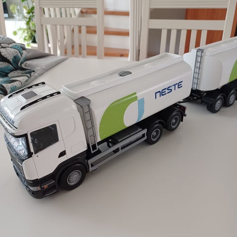 Nesteen rekka hieman kulunut ja takaovi puuttuu. Säiliöön voi laittaa oikeasti vettä. Scania hyvässä kunnossa.
