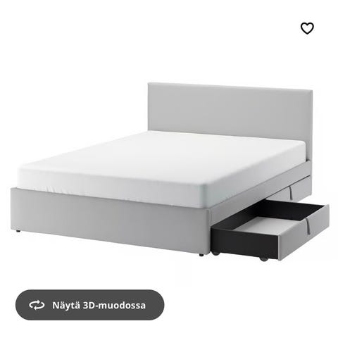 Tosi hyväkuntoinen Ikea Kleppstad sänky (ovh. 199€) ja Ikea Åkrehamn patja (ovh. 499€).