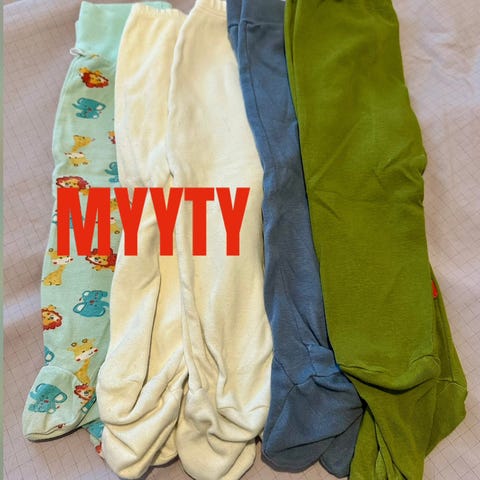 Myydään settinä kahdet vauvan potkuhousut harmaassa ja beigessä värissä. Ovat siistit, vähän käytetyt, mutta pyykissä tullut heti pesuhaitua. Kiva leveä vyötärökaitale. Kokomerkintä 50/56, ottaisin käyttöön vasta koossa 56.