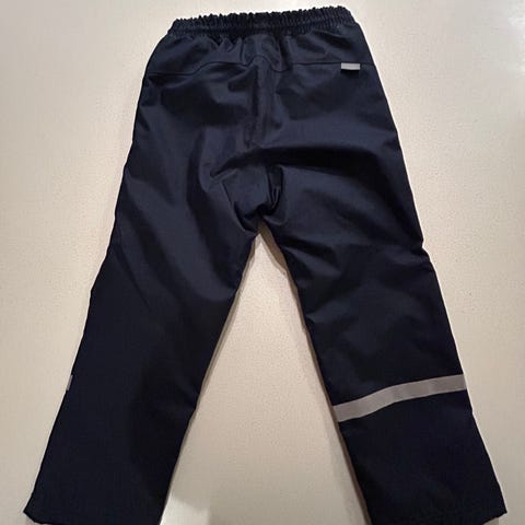 Kerran käytetyt tummansiniset kuorihousut / välikausihousut koossa 110 Pientä pölyjälkeä toisessa polvessa pinnassa, ei kulumia. Suomalainen Tutta-merkkinen. Heijastimet lahkeissa.