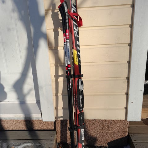 Peltonen, nanogrip tiger sukset 140cm ja oneway sauvat 100cm.
