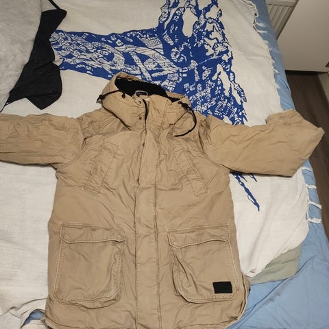 H&M hupullinen, lämmin takki. Koko L. Ei haise ja siisti. Kiristyy vyötäröstä nauhalla.
