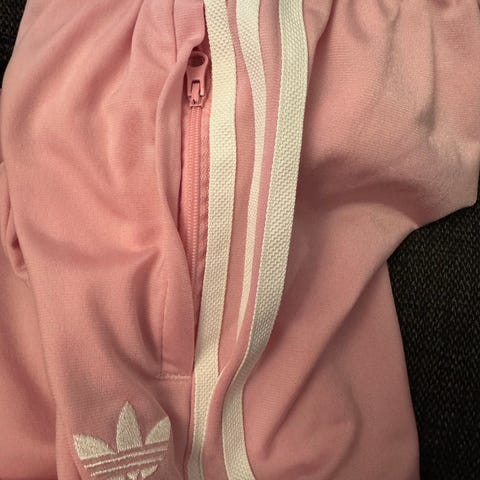 Myydään siistikuntoiset Adidas -verkkarit, koko 152 cm. Toisessa polvessa kuvanmukainen kuluma, jonka voi parsia tai laittaa siihen paikan.