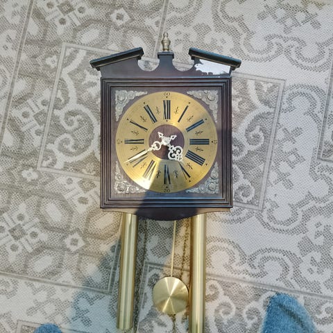 Myydään näyttävä ja koristeellinen vanha seinäkello. Kellossa on kauniit kullanväriset koristeet, runsas barokkihenkinen muotoilu sekä elegantti kellotaulu koristeellisilla viisareilla. Todellinen katseenvangitsija klassiseen tai persoonalliseen sisustukseen.