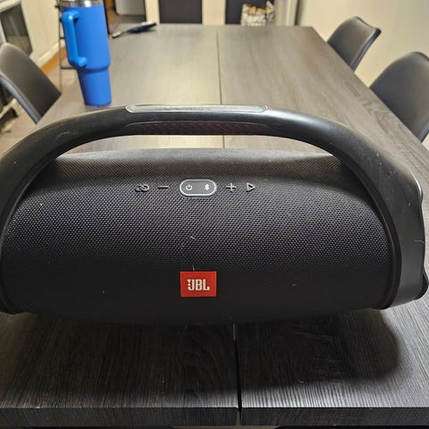 JBL Boombox 2. Toimii moitteetta. Pieniä naarmuja, mutta ei mitään mikä paistaisi silmään. Mukaan tiestysti laturi.