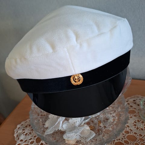 Unisex ylioppilaslakki, jossa valkoinen lakin päällinen ja musta lippa.
