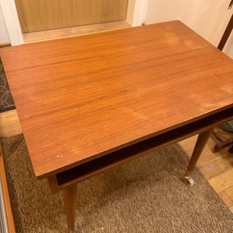 Vintage teak tv-taso / sivupöytä lehtitelineellä 1960-70 -luvulta