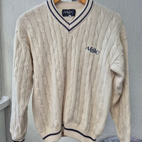 Siisti, valkea puuvilla neule, palmikko kuvio, reilu koko L.