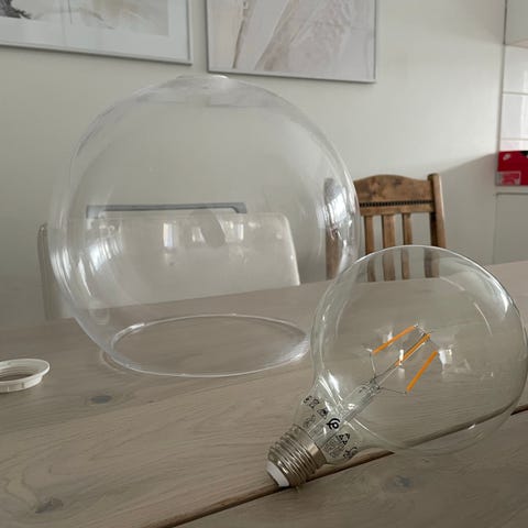 2kpl savunharmaita lasikupuja, toisessa myös valaisin. Hinta 15e/kpl tai 25e molemmat. Vain nouto! Tarjoa!