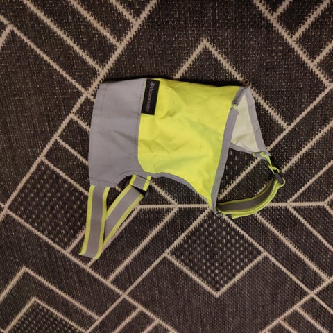 Koiran heijastinliivi, kerran pari käytetty ja toimii hyvin. Ei pesty. Omalle koiralle olikin liian pieni.