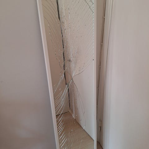 Annetaan peili. Peilin alareunassa säröilyä. Mitat 60 x 122 cm.