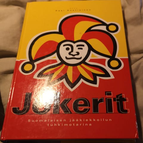 Jokerit jääkiekkokirjat ja kausijulkaisut. Pakettiin kuuluu useampi Jokerit-aiheinen kirja ja/julkaisu, joissa käsitellään seuran kautta, pelaajia ja taustahenkilöitä. Sopii kokoelmaksi jääkiekkoseuran historiasta ja toiminnasta kiinnostuneelle lukijalle. Hyvä kuntoiset julkaisut. Voi tarjota yksittäisistä.