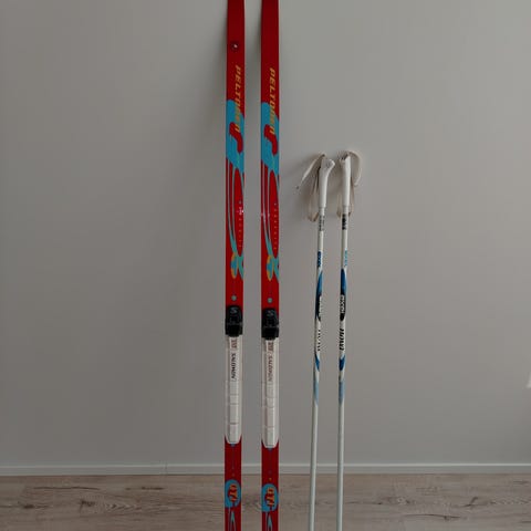 Sukset NNN n.145cm ja sauvat 115cm yhteensä 15€