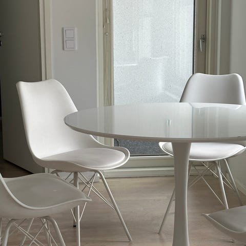 Neljän hengen ruokapöytä ja kaksi tuolia