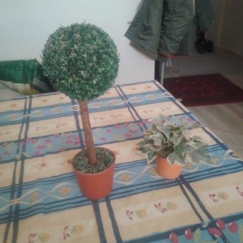 Tekokasvit ruukuissa. Useita vihreitä lehtikasveja sekä vaaleanpunaisin kukin varustettu kasvi. Sopivat sisätilojen tai katetun parvekkeen ja terassin somistamiseen. Helppohoitoinen vaihtoehto elävien kasvien tilalle, ei vaadi kastelua tai valoa. Myydään ruukkuineen.