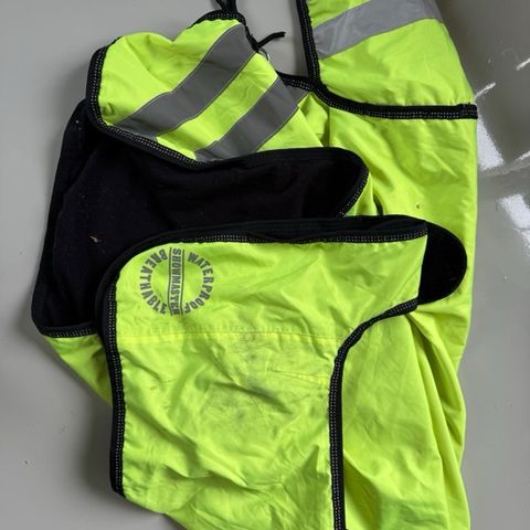 Vihreä heijastinratsastusloimi, koko 125cm. Sisävuori fleeceä. Likatahroja molemmilla puolella, ne saa kunnon pesulla pois. Käytetty, mutta kaikinpuolin ehjä ja hyväkuntoinen.