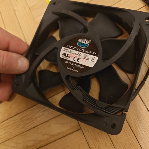 Vardar tietokoneen kotelotuuletin, koko noin 120 mm. Väri musta kehys ja harmaat roottorin lavat. Tuuletin soveltuu tietokoneen kotelon tai jäähdyttimen ilmankiertoon. Liitäntä johdossa näkyvän liittimen mukainen (katso kuvat). Myydään kuvissa näkyvät tuulettimet yhdessä.