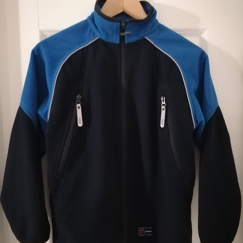 Yhdellä lapsella käytössä ollut fleece koossa 134 / 140. Ehjä ja siisti, sisällä napit