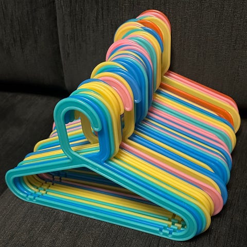 Ikea lasten vaateripustimet. Muoviset ripustimet, moniväriset, ehjät, 16 kpl.