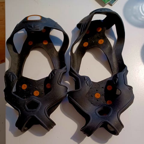 🥾Huomaamaton ja helppokäyttöinen liukueste. Asetetaan venyttämällä jalkineen kärkiosaan, jolloin nastat jäävät päkiän alle. Elastinen kumirakenne ei vahingoita jalkinetta ja liukueste pysyy hyvin jalkineessa paikallaan. Liukuesteessä on 5 vaihdettavaa kovametallinastaa. Liukuesteessä on yksi koko joka soveltuu useimpiin vapaa-ajan jalkineisiin. Hinta 3eur