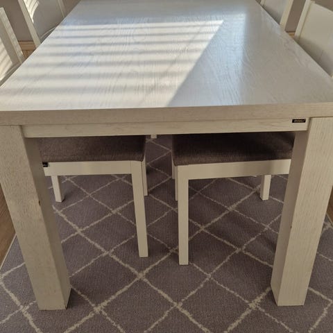 Pöydän pinnassa käytön jälkiä. Napakka kokonaisuus.