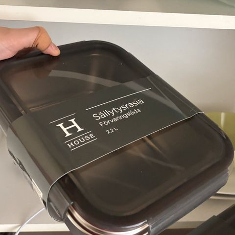 Keittiön säilytyslaatikko. Läpinäkyvä muovilaatikko, jossa valkoinen kansi ja kahva. Irrotettava rei'itetty tarjotin sisällä ruoan puristamisen helpottamiseksi. Sopii vihannesten fermentointiin.