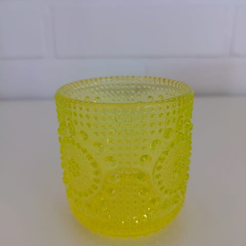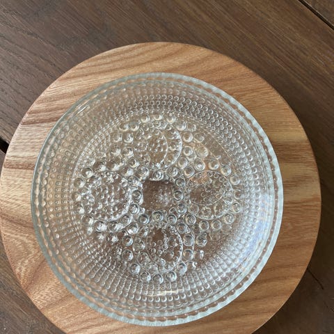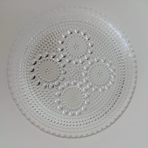 Iittala Grapponia lasilautanen keltainen. Lautanen on valmistettu lasista ja siinä on kohokuvioitu, pisteistä muodostuva koristekuvio. Soveltuu esimerkiksi tarjoiluun tai kattaukseen. Yhteensä 6 kpl, hinta 15€/lautanen. Nouto.