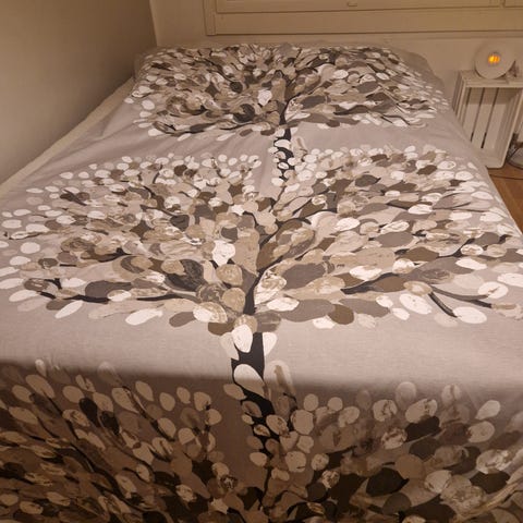 Verho. Merkki ehkä Vallila. Erinomaisessa kunnossa. Koko: leveys 140 cm ja pituus 231 cm.