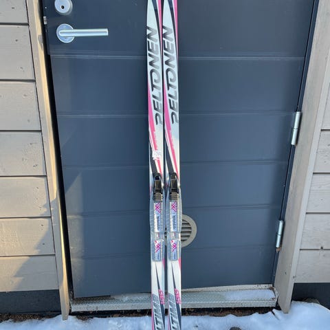 Lasten suomupohjalliset 130 cm pitkät sukset. Ei huolta pitovoitelun suhteen. NNN siteet. Sukset on hieman elämää nähneet, mutta täysin käyttökelpoiset.