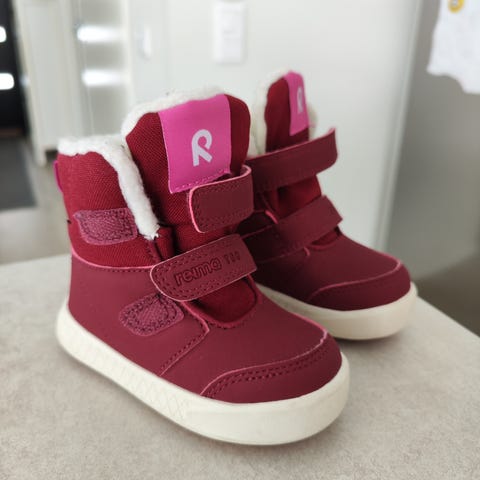 Reima lasten talvikengät ReimaTec Pyrytys, koko 21. vähän käytetyt yhden talven alun, uutena ostetut. Väri viininpunainen vaaleanpunaisilla yksityiskohdilla.