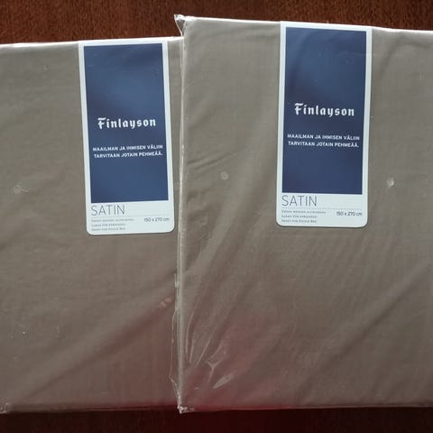 Finlayson Satiinialuslakana, 150 x 270 cm, 2 kpl. Uudet ja käyttämättömät (pakkaus avattu). 100 % luomupuuvilla. Sopii sängylle joka on 80 - 90 cm leveä. Toridiili mahdollinen.
