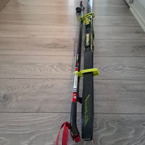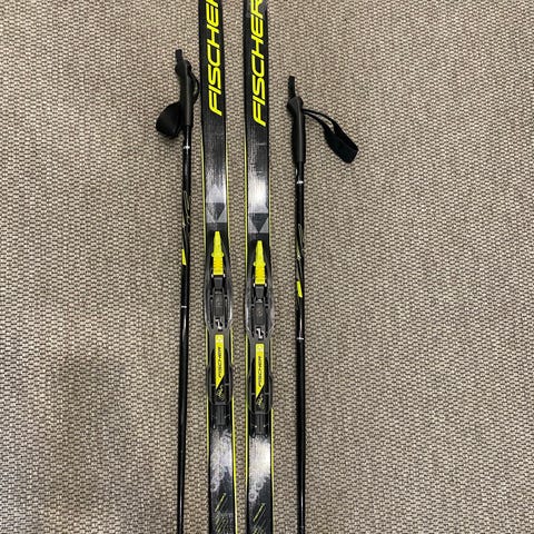 Fischer RCS sprint sukset 150cm ja sauvat 110cm. Siteet valmiina ja pohjassa uritettu rakenne. Väritys musta–keltainen. Mukana yhteensopivat musta–keltaiset sauvat käsilenkeillä.