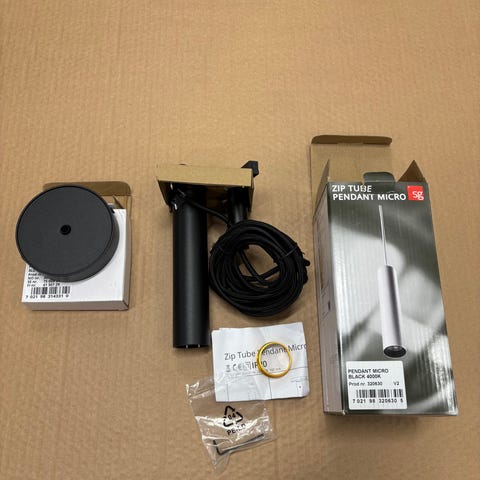 Myydään ylimääräiseksi jäänyt SG Armaturen Ripustusvalaisin - Tube R, 26W, 4K, 2210lm, musta, 3-V adapterilla + kattokannella. Sähkönumero: 4223871