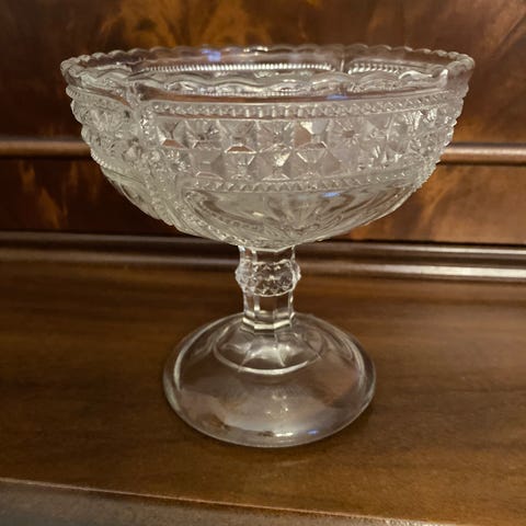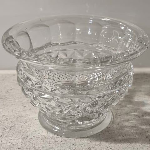 Riihimäen lasin jalallinen sokerikko, korkeus ja halkaisija noin 11cm. Kunto hyvä.