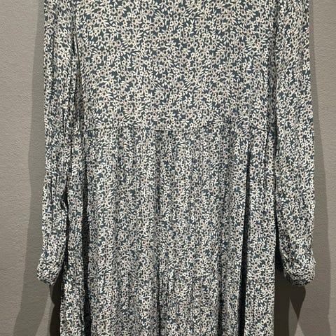 Todella kaunis kuosi, vähän käytetty, hyvässä kunnossa. Kaulukset, napit edessä puoleen väliin ja hihansuissa, kaunis frillahelma. Rento monikäyttöinen malli.