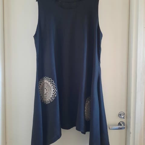 Myydään pitkä, tummansininen pellavamekko. Mekossa ei ole kokoa, mutta se on kutakuinkin xl. Mekossa on rinnan kohdalla istuvuutta parantavat laskokset ja helmassa pitkät halkiot, jotta sen kanssa on hyvä liikkua. Helma on muutenkin A-linjainen. Ihana kesämekko ja asustettuna sopii hyvin juhliinkin.