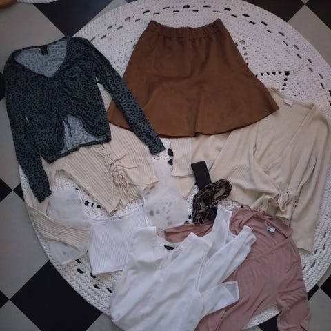 Ihania vaatteita pakettina, vaatteiden kunnossa ei moitteita.