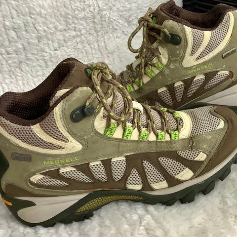 Myydään hyväkuntoiset mustat Merrel merkkiset vedenpitävät varrelliset goretex lenkkarit.
