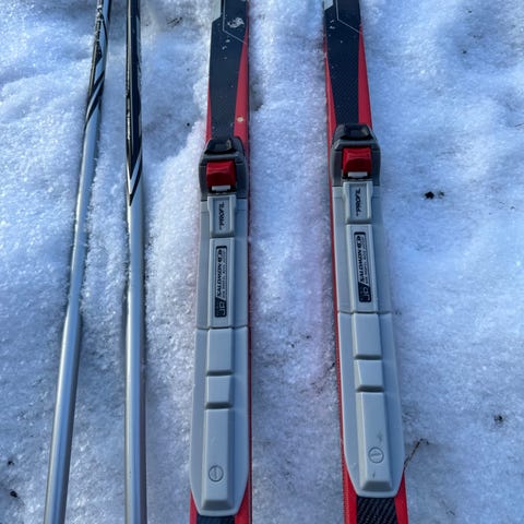 Lasten maastohiihtosetti: sukset 120cm, monot 33 ja sauvat 100cm