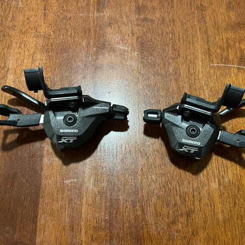 Myynnissä vähäisesti käytetty XT M8100 -sarjan jarrusetti. Jarruvivut ovat molemmin puolin BL-T8100, eli pitkällä ja miedosti taivutetulla kahvalla. Jarrusatuloina nelimäntäinen BR-M8120 ja kaksimäntäinen BR-M8100. Letkujen pituudet noin 65 ja 128cm, nelimäntäinen jarru letkutettu vasemman puolen kahvaan.