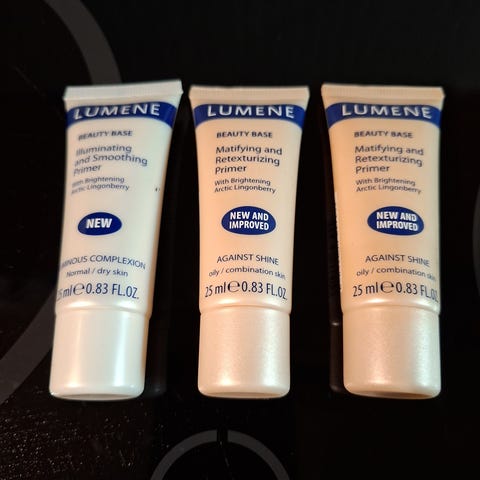 Tuotteet on pakattu pieniin tuubeihin, jotka sopivat esimerkiksi päivittäiseen meikkipohjan tekoon.